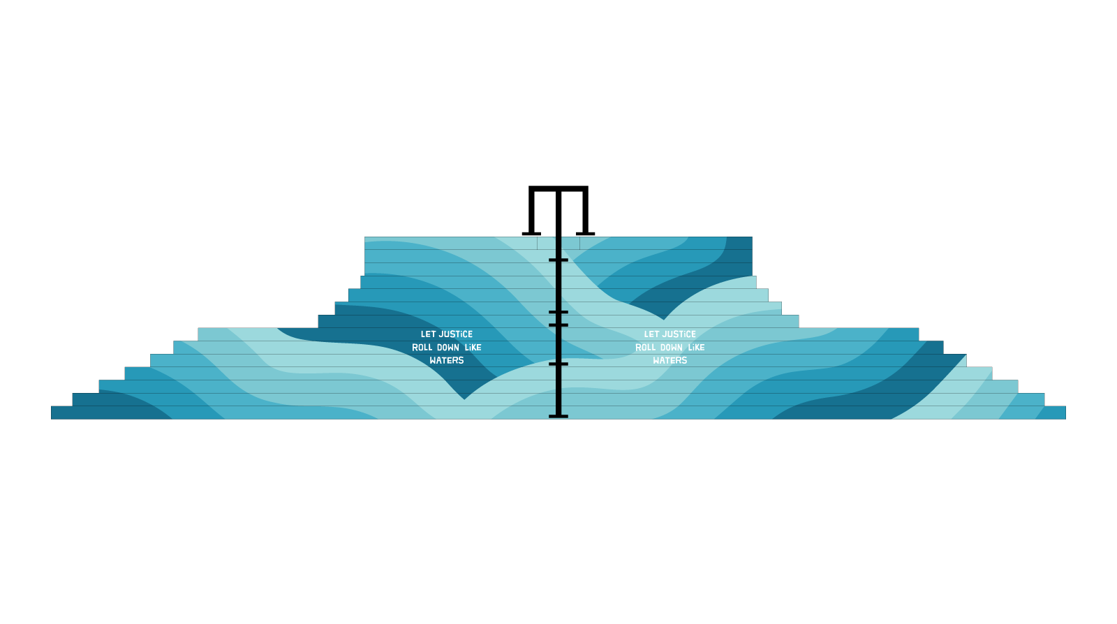 The concept was to represent a justice-themed quote as a flowing river. I illustrated a series of overlapping waves in varying shades of blue to create a sense of movement down the staircase.
